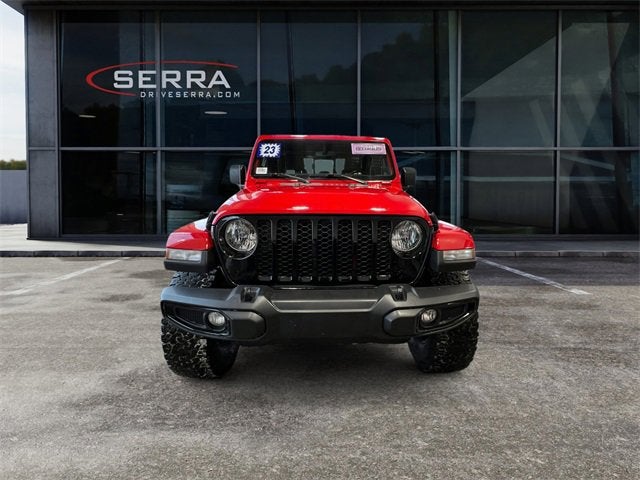 Certified. 17 ALUMINUM WHEELS, 4WD, GPS NAVIGATION SYSTEM, HEATED FRONT SEATS, HEATED LEATHER WRAPPED STEERING WHEEL W/ MOUNTED CONTROLS, KEYLESS ENTRY, APPLE & ANDROID CARPLAY CAPABLE, WIFI CAPABLE, ALPINE PREMIUM AUDIO SYSTEM, UNIVERSAL HOME REMOTE, HEATED DOOR MIRRORS, REAR VISION CAMERA, TRACTION CONTROL, BRAKE ASSIST, 8.4 RADIO & PREMIUM AUDIO GROUP, COLD WEATHER GROUP, CONVENIENCE GROUP, QUICK ORDER PACKAGE 23W WILLYS, TECHNOLOGY GROUP, 1-Year SiriusXM Guardian Trial, 115V Auxiliary Power Outlet, 4-Wheel Drive Decal, 400W Inverter, 4G LTE Wi-Fi Hot Spot, 5-Year SiriusXM Traffic Service, 5-Year SiriusXM Travel Link Service, 8.4 Radio & Premium Audio Group, 8.4 Touchscreen Display, 97 MPH Vehicle Max Speed Calibration, Air Conditioning w/Auto Temperature Control, Alpine Premium Audio System, Anti-Spin Differential Rear Axle, Apple CarPlay, Auto-Dimming Rear-View Mirror, Automatic Headlamps, Black Grille, Body Color Fender Flares (2-Piece), Cold Weather Group, Console Bin Task Light, Convenience Group, Deep Tint Sunscreen Windows, Emergency/Assistance Call, Front 1-Touch Down Power Windows, Front Heavy Duty Red Accent Shock Absorbers, Google Android Auto, GPS Antenna Input, GPS Navigation, HD Radio, Heated Front Seats, Heated Steering Wheel, Integrated Center Stack Radio, Integrated Voice Command w/Bluetooth®, Media Hub w/2 Charge Only USBs, Mold In Color Bumper w/Gloss Black, MOPAR All-Weather Slush Mats, Off-Road Info Pages, Power Heated Mirrors, Power Tailgate Lock, Premium Wrapped Steering Wheel, Protection Sill Rails, Quick Order Package 23W Willys, Radio: Uconnect 4C Nav w/8.4 Display, Rear Heavy Duty Red Accent Shock Absorbers, Remote Keyless Entry, Security Alarm, SiriusXM Radio Service, SiriusXM Satellite Radio, SiriusXM Traffic Plus, SiriusXM Travel Link, Speed Sensitive Power Locks, Sun Visors w/Illuminated Vanity Mirrors, Technology Group, USB Host Flip, Wheels: 17 x 7.5 Black Aluminum, Willys, Willys Hood Decal. CARFAX One-Owner. Clean CARFAX.Firecracker Red Clearcoat 2023 Jeep Gladiator Willys 4D Crew Cab 3.6L V6 24V VVT 6-Speed Manual 4WDCertification Program Details: INSPECTED, UPGRADED and GUARANTEED. BOOM Certified pre-owned comes with 6 months EasyCare Select 4. Keep your vehicle looking and feeling like new with our hand-selected suite of EasyCare benefits. We will provide six months of our EasyCare Select Plus package that offers our most coveted and valuable benefits. Cosmetic Wheel repair, Key Replacement, Paintless Dent Repair, Windshield Repair, and Roadside Assistance all covered for 6 months and unlimited milesOdometer is 11713 miles below market average!PLEASE CALL OR EMAIL OUR INTERNET TEAM TODAY FOR MORE INFORMATION OR VISIT DRIVESERRA.COM FOR MORE INFORMATION AND TO SEE OUR COMPLETE SELECTION OF USED VEHICLE INVENTORY.